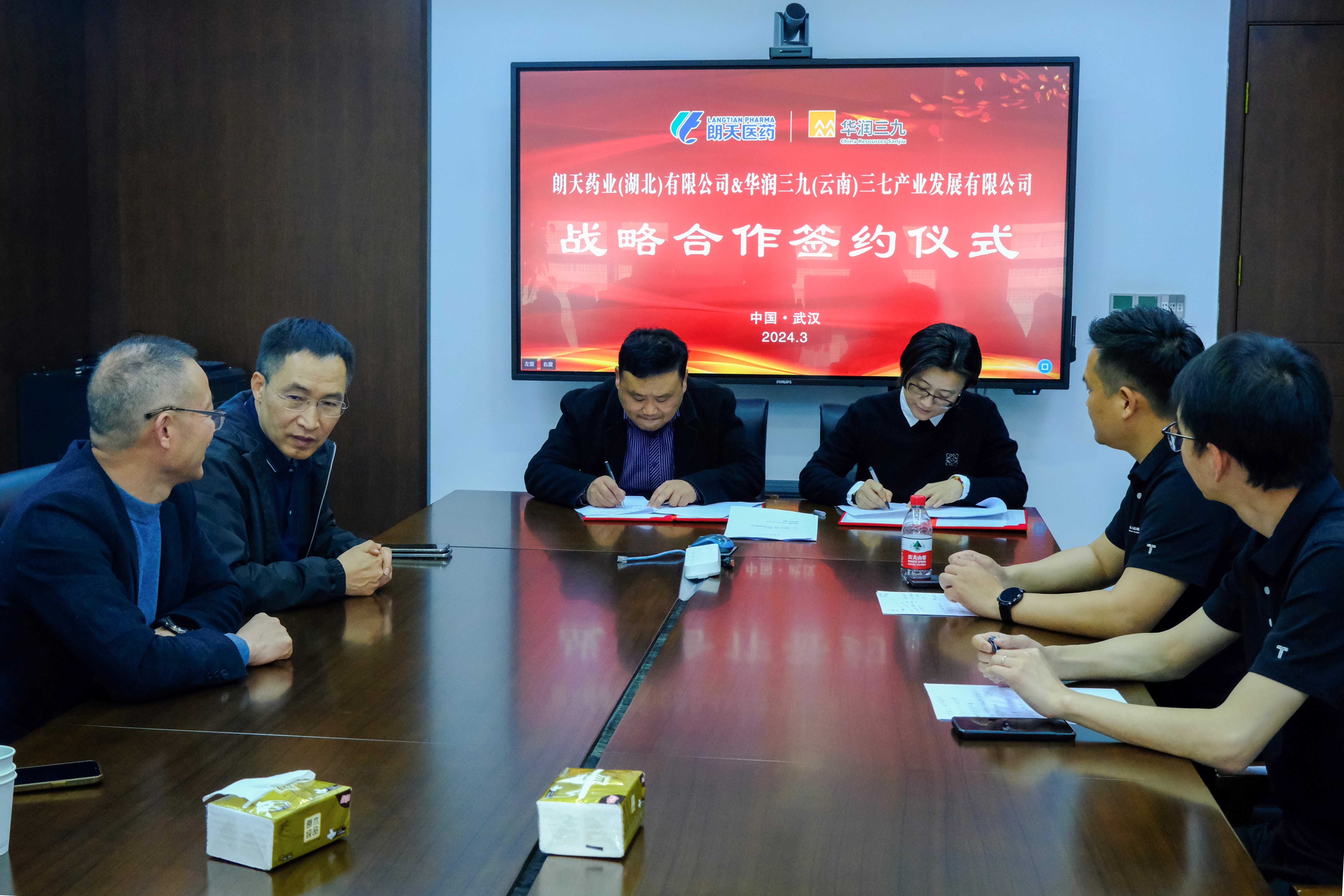 3月14日,尊龙凯时药业(湖北)有限公司与华润三九(云南)三七产业发展有限公司高层就“三七总皂苷”原料供应事宜在尊龙凯时医药集团武汉总部举行座谈会并签订战略合作协议。集团董事长蔡翔,华润三九(云南)三七公司副董事长黄辉洪、总经理王平等出席会议。